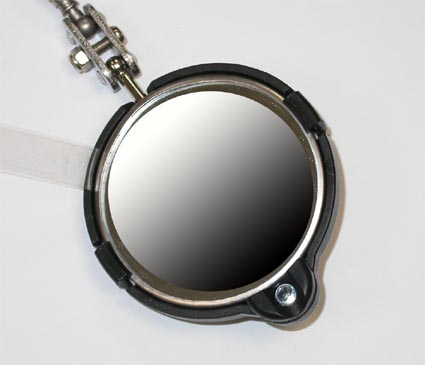 Tipo telescopico con specchio snodato Ø mm 56, LED a luce bianca (si accende mediante interruttore posto sul retro dello specchio) e impugnatura in materiale bicomponente antiscivolo. Funzionamento con batterie al litio Art. 3600 R, in dotazione.